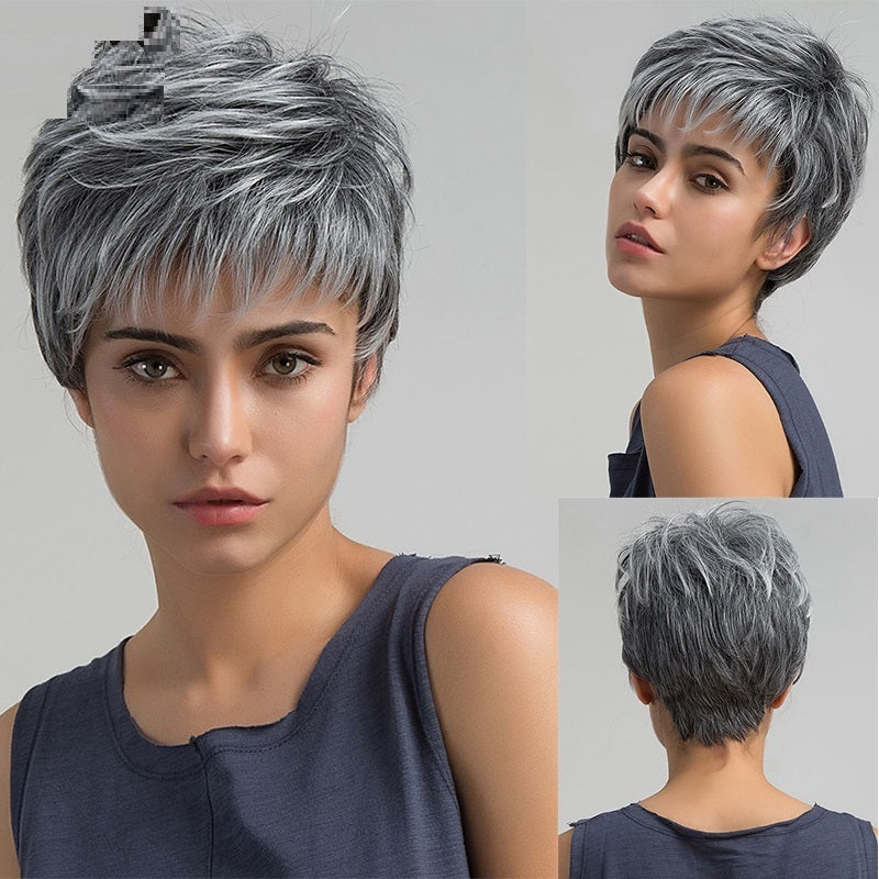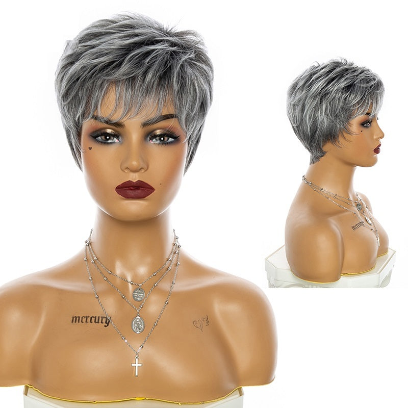 Granny Gray Middle-aged And Elderly Mother With Short Curly Hair