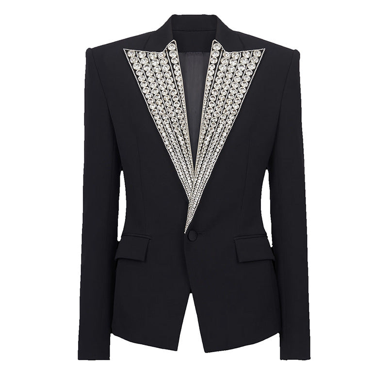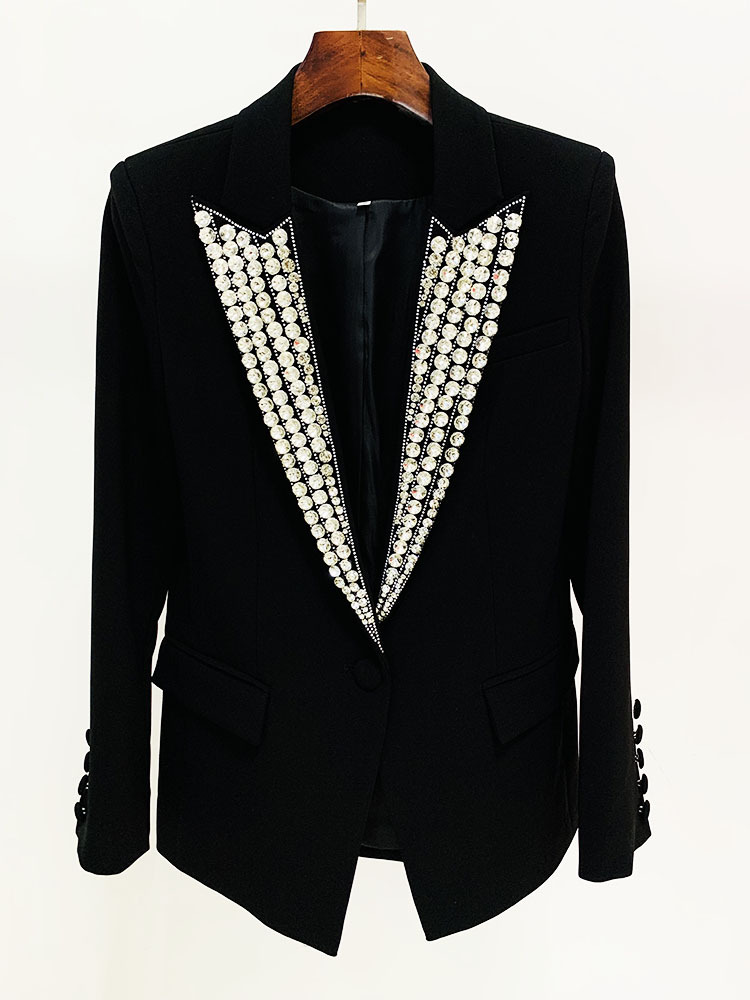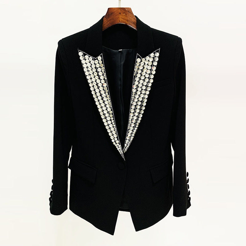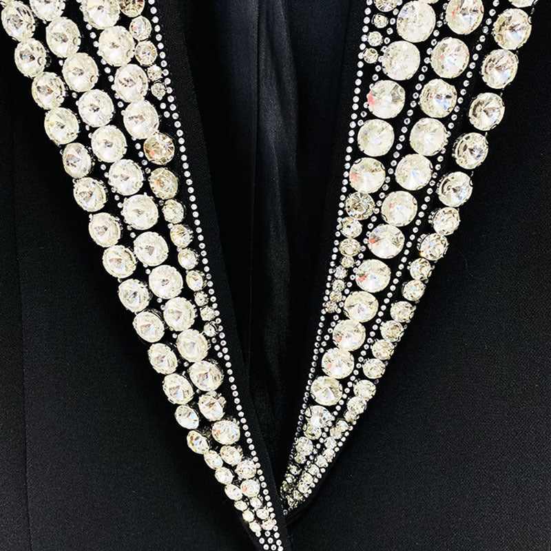Socialite Temperament Exquisite Rhinestone Beaded One Button Slim Suit Jacket