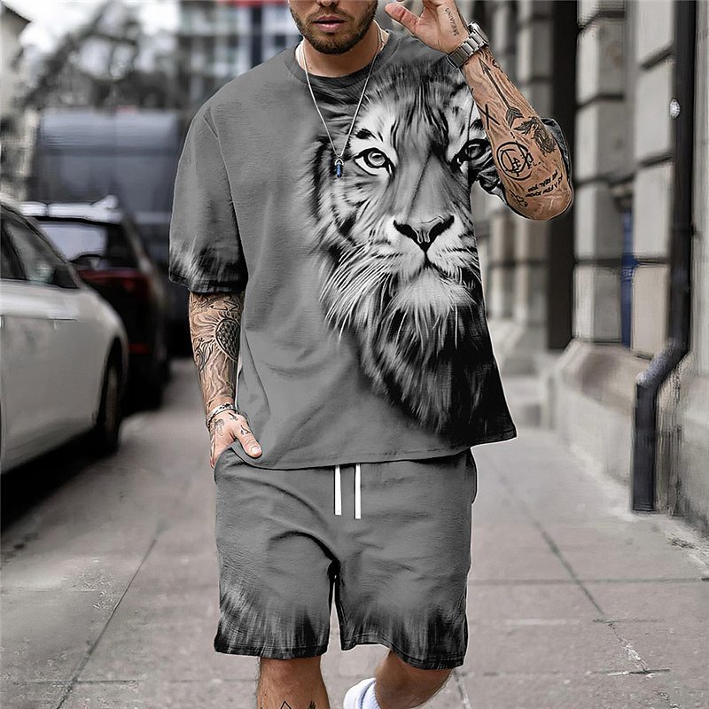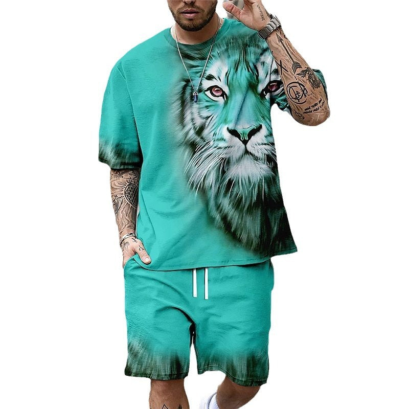 Tiger Summer 3D Printing Sports Leisure Vacation T-shirt Shorts Set